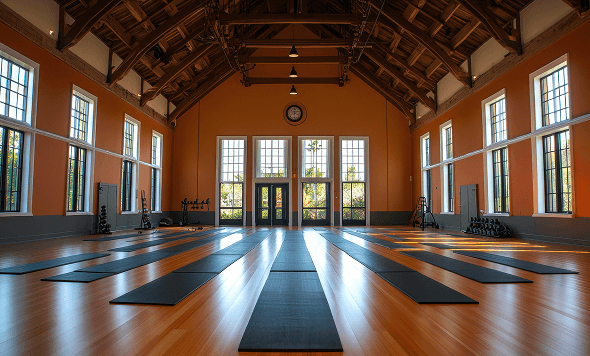 In our Siddha Hall, the light comes in soft — not fluorescent, not harsh. The mats aren’t crowded edge to edge. The silence isn’t forced; it just sits there with you. Every movement is guided gently. There’s no race to “get it right.” It’s a slow unfolding, the kind that gives your mind time to catch up with your body.